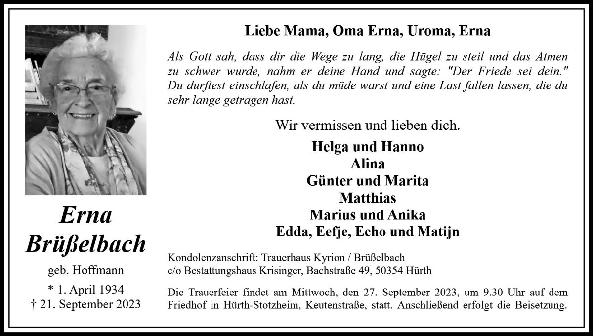 ich bin unendlich traurig, dass Erna von uns gegangen ist.