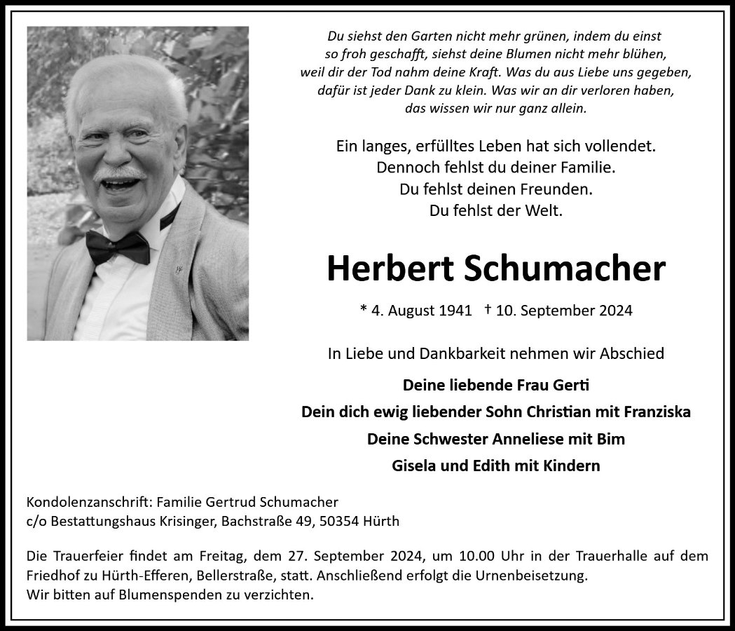 Herbert Schumachergestorben am 10. September 2024