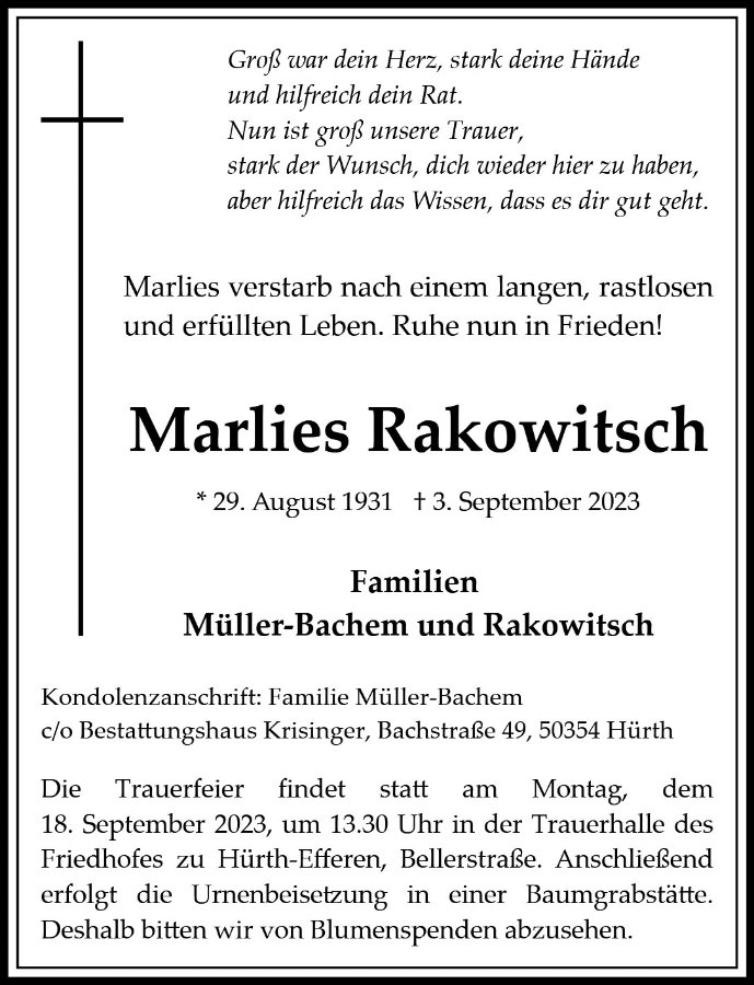 in diesen Tagen fühlen wir mit Ihnen und wünschen Ihnen von Herzen, dass Sie aus den glücklichen Erinnerungen Kraft schöpfen, um positiv in die Zukunft zu gehen. Diese Gedenkseite möge Ihnen dabei helfen, Ihre Trauer zu teilen und das Andenken gemeinsam wachzuhalten.