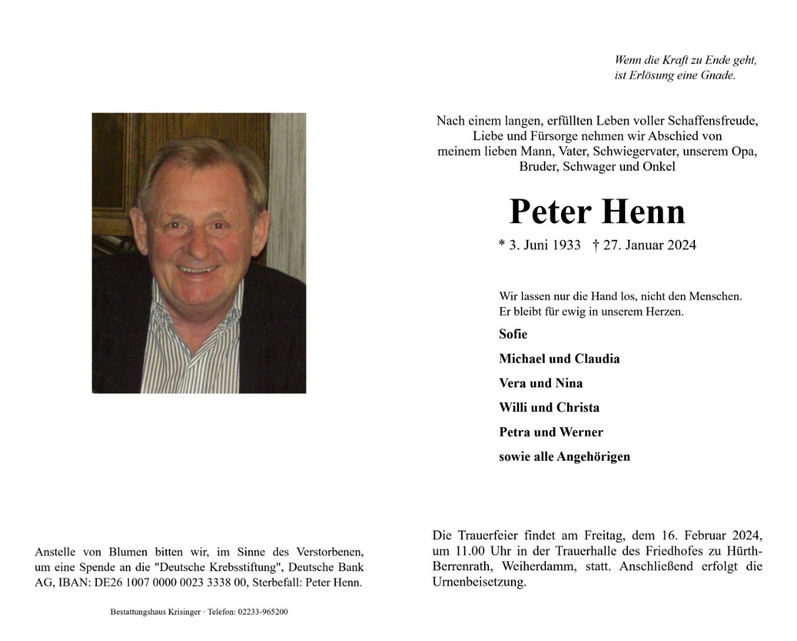 gestorben am 27. Januar 2024 in Hürth
