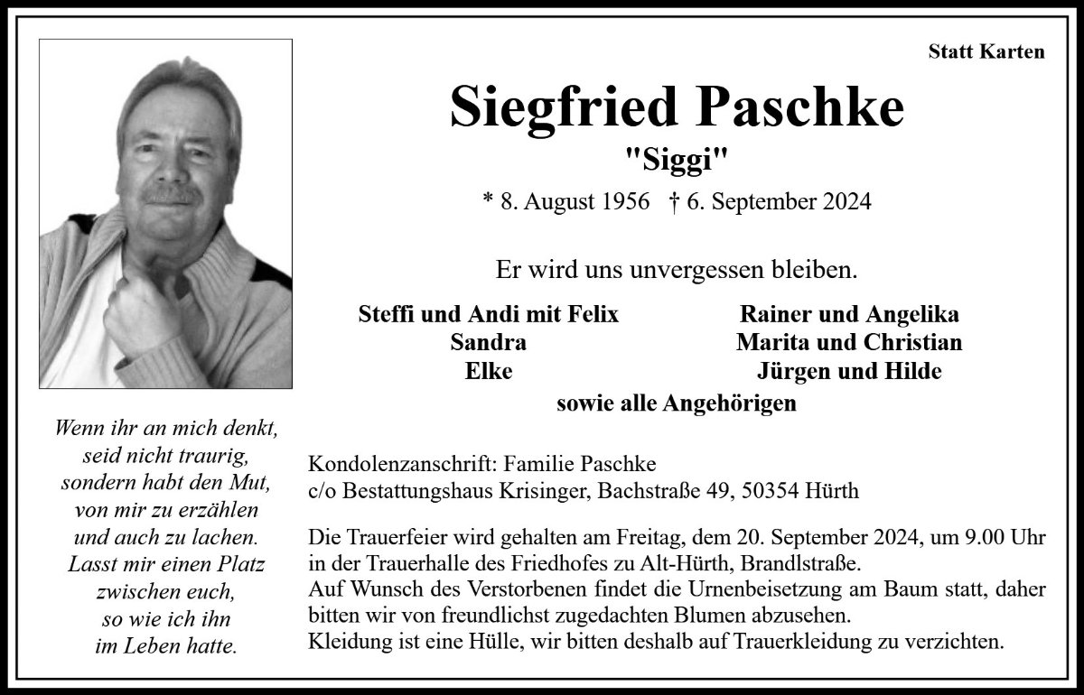 wir wünschen Ihnen für die kommende Zeit viel Kraft und dass es Ihnen gelingt, dankbar auf die positiven Erinnerungen zurückzublicken. Diese Gedenkseite möge Ihnen dabei helfen, Ihre Trauer zu teilen und das Andenken gemeinsam wachzuhalten.