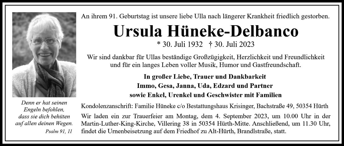 Ursula Hüneke-Delbancogestorben am 30. Juli 2023
